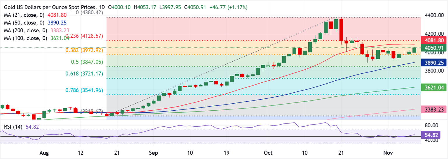 Gold now looks for acceptance above the $4,050 psychological level to take on the 21-day Simple Moving Average (SMA) at $4,081.