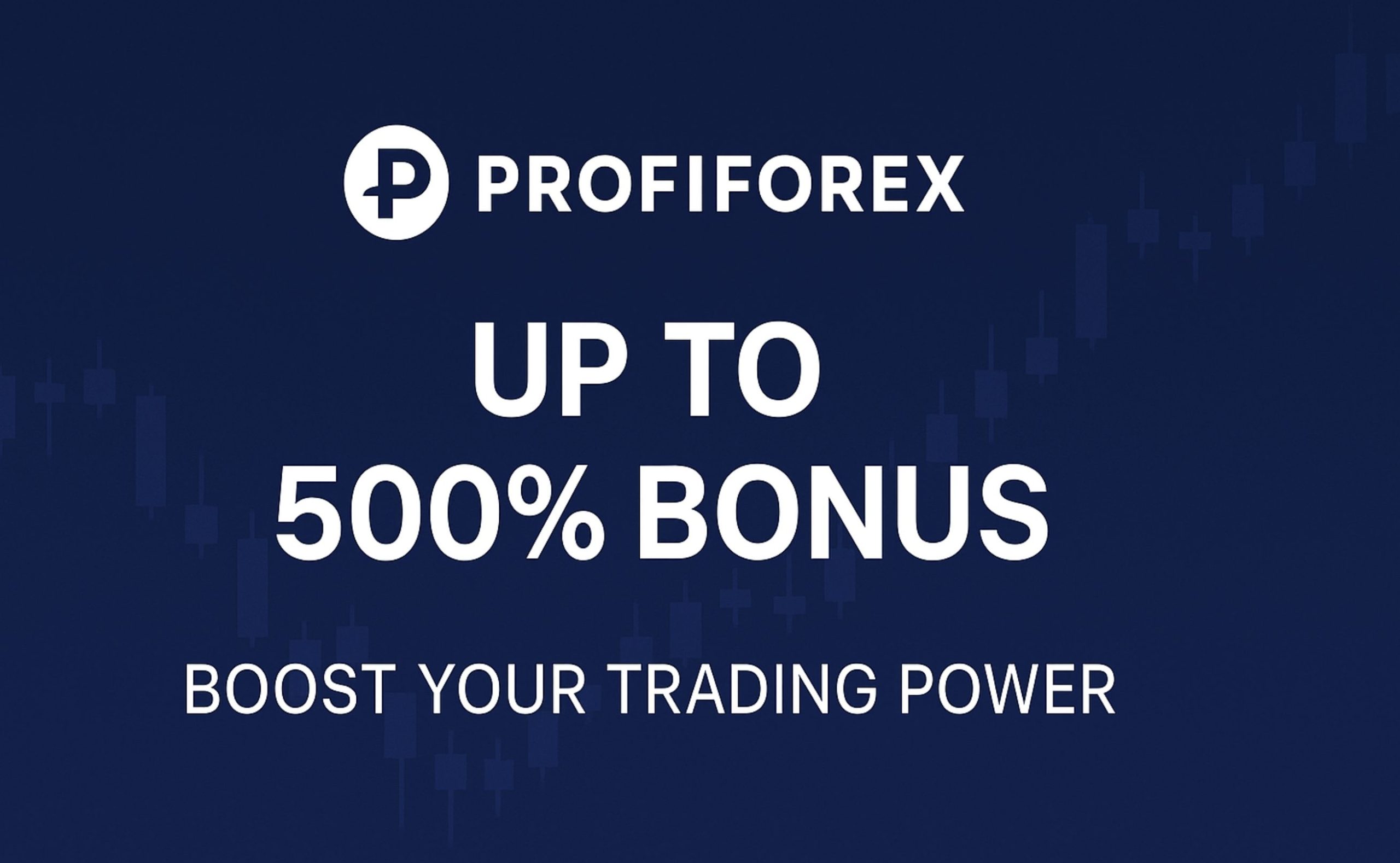 The Profiforex Up to 500% Bonus is a flexible trading incentive offered by Profiforex that allows traders to choose bonus rates between 50% and 500% on qualifying deposits. This promotional bonus is designed to boost your trading capital and enhance your potential in the financial markets.