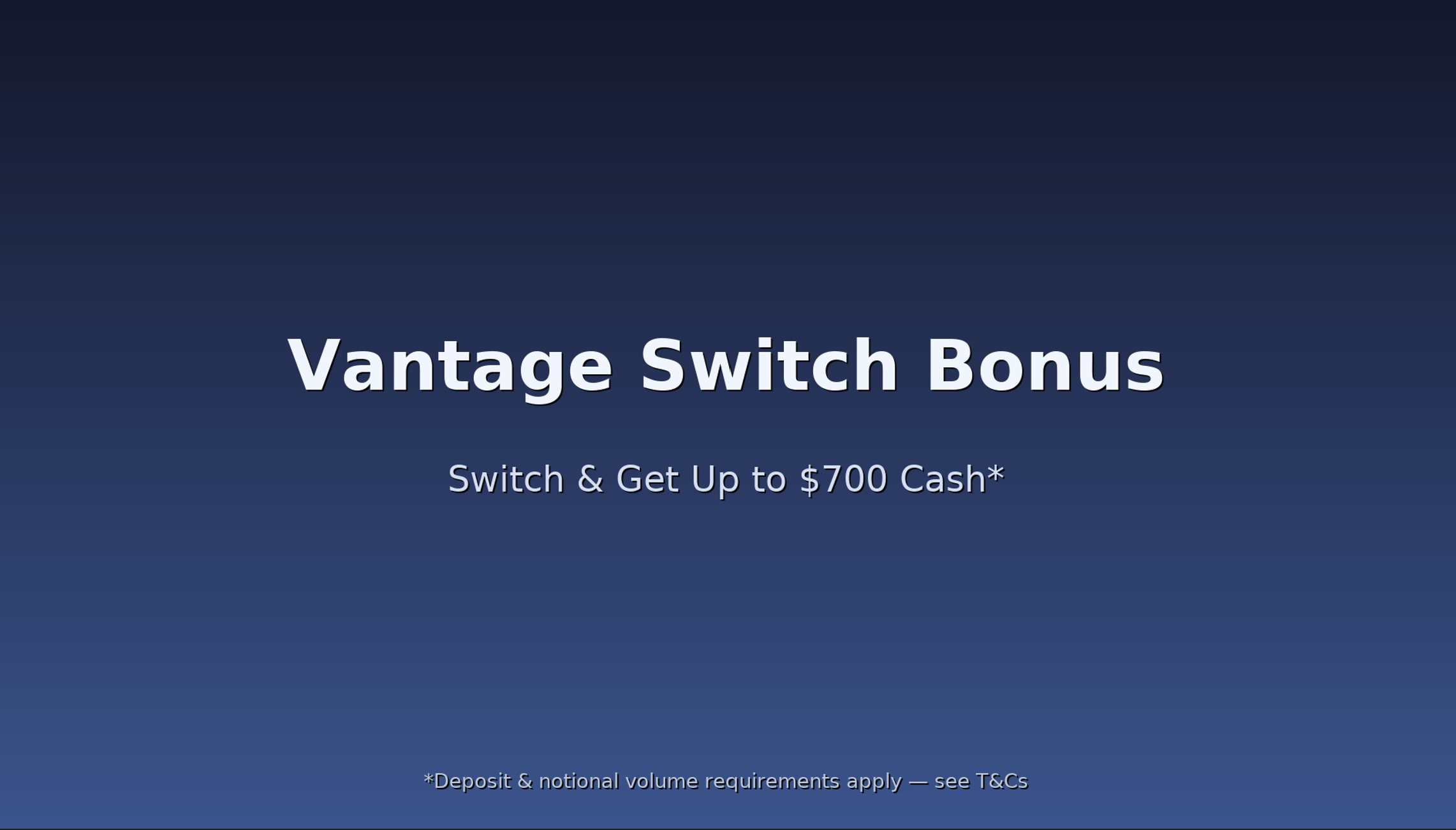 The Vantage Switch Bonus is a limited-time cash promotion for new Vantage clients who previously traded with another broker.